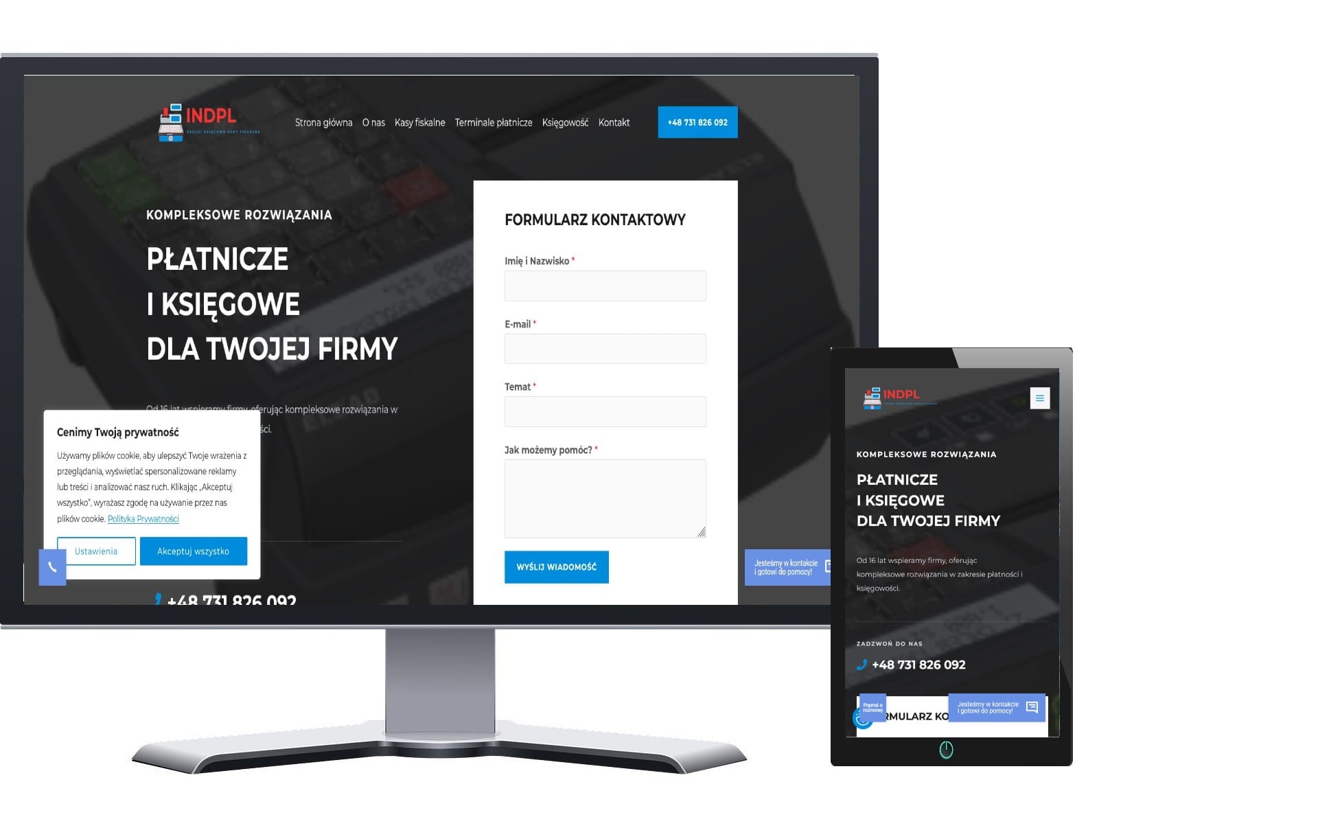 Wykonana przeze mnie strona internetowa przede wszystkim jest responsywna czyli działa i wygląda pięknie na każdym urządzeniu: komputerze, tablecie i telefonie. Każdy szczegół dostosowuję pod tym kątem.